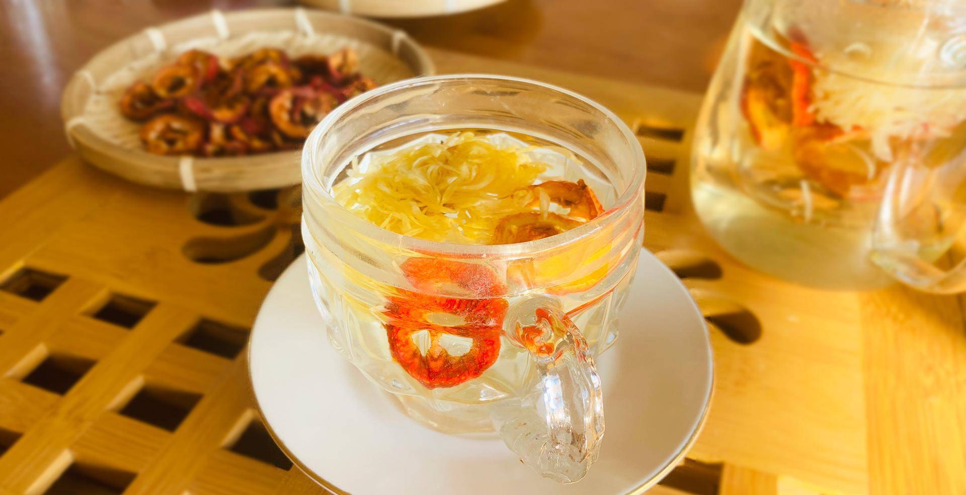 食材:苹果1个、山楂3枚、红枣6枚、冰糖10g
