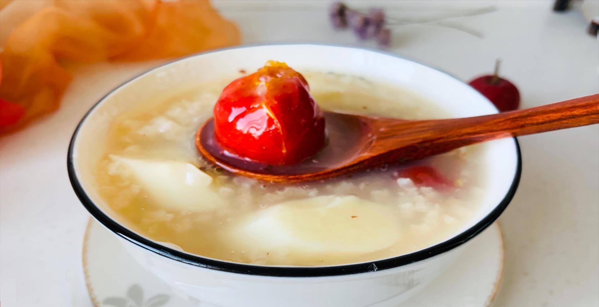 食材:糯米半碗、山楂4个、山药半根、红枣5个、冰糖1块