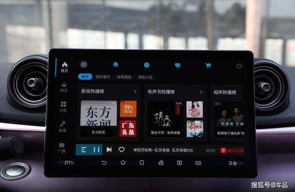 除了主动声技术外,比亚迪海豚在车机系统的配置上也保持了较强的拓展性,中控台中间依然搭载了12.8英寸自适应可旋转悬浮屏,内部集成了DiLink智联车机,基于安卓开发的系统拥有极强的开源属性,不仅内置有常规的GPS和多媒体功能外,还可根据用户需求通过应用商城完成相关APP的安装,整体的操作感受类似一台大型平板海豚有声 苹果版没有 。顶配骑士版车型还加入了L2级辅助驾驶功能,支持各类预警和巡航功能。