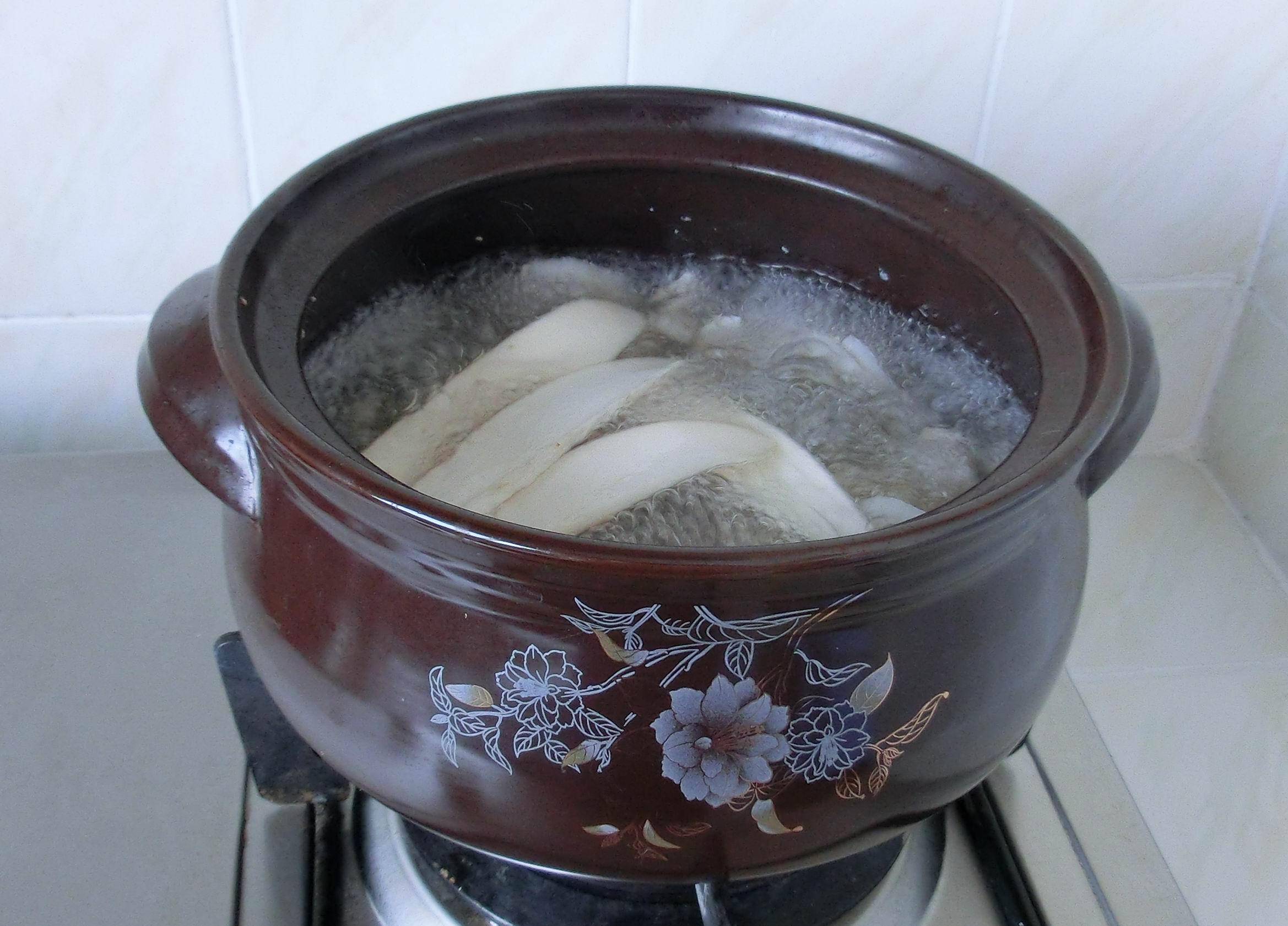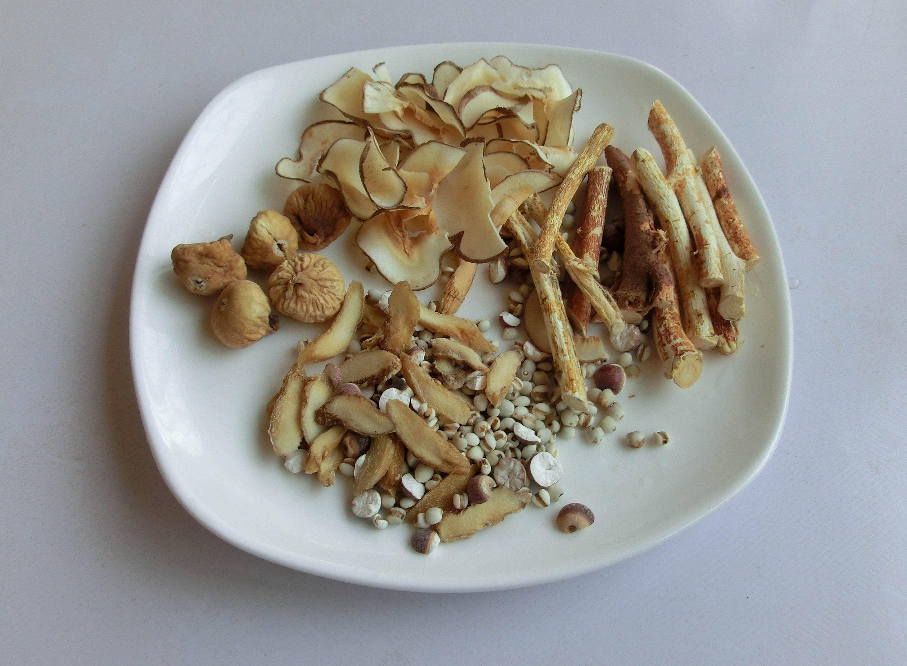 材料:五指毛桃30克、海底椰10克、玉竹15克、芡实10克、无花果20克、薏仁20克、排骨300克、盐适量