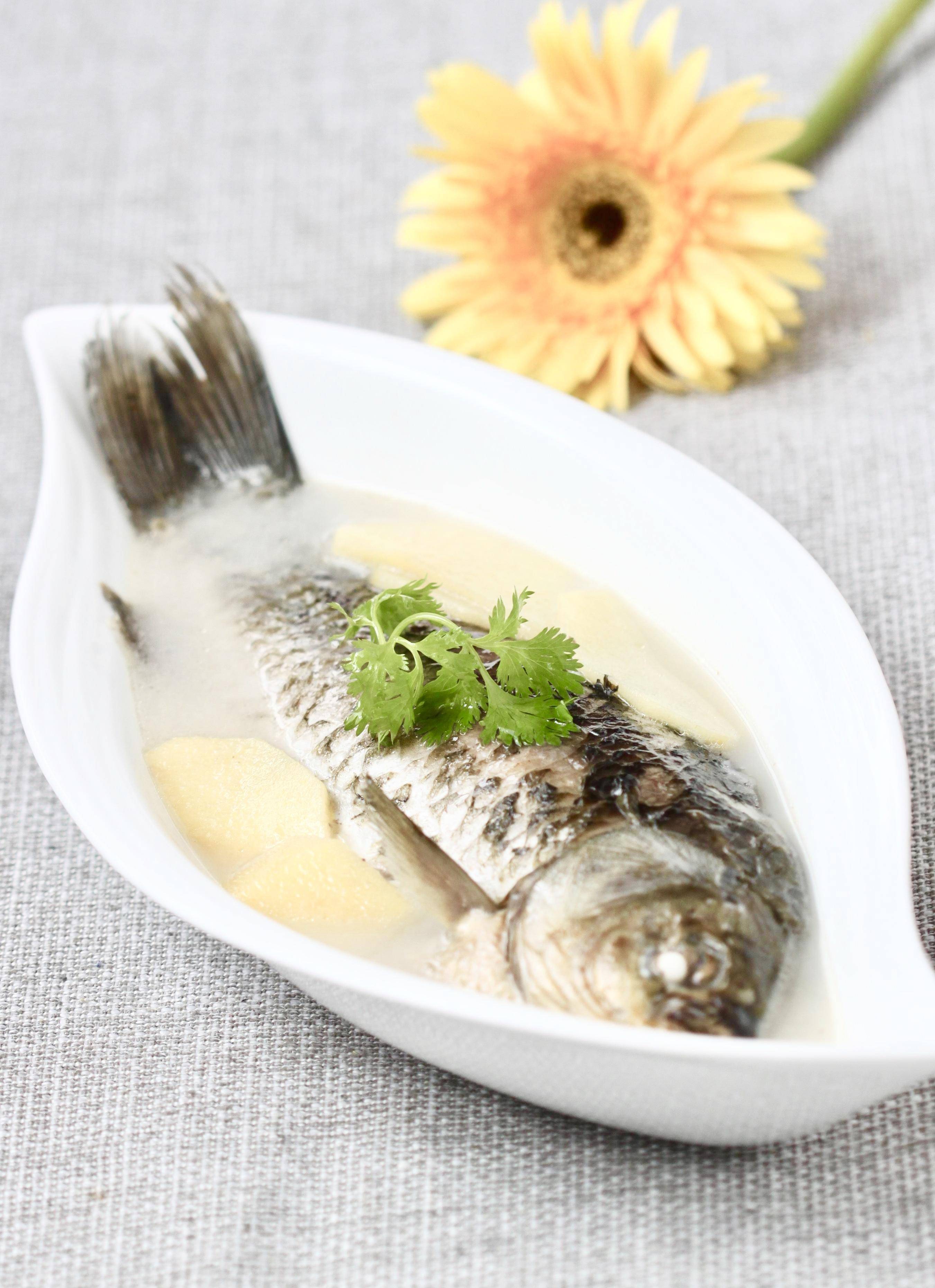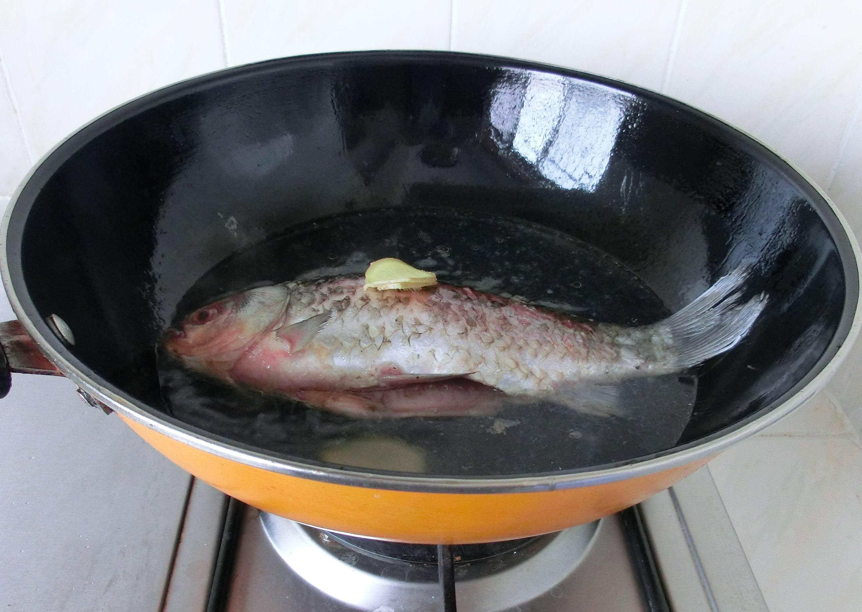 3. 鲫鱼煎至两面金黄后,加入足够多的开水,如果中途需要加水的话,一定要加开水,不能加冷水,然后再放入姜片,料酒苹果7公开版和。