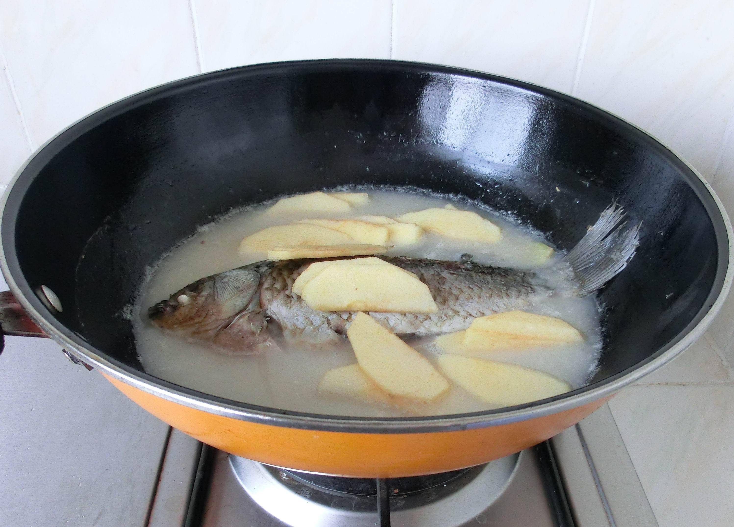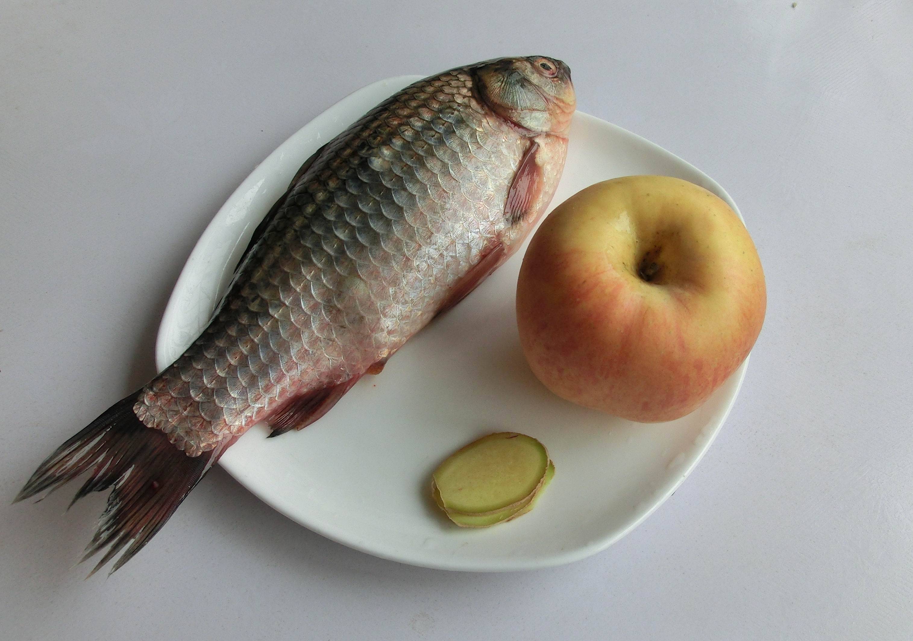 材料:鲫鱼1条,苹果1个苹果7公开版和。