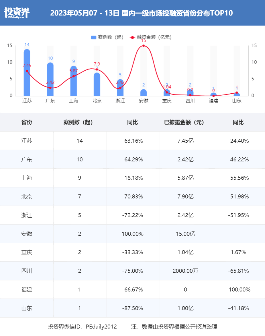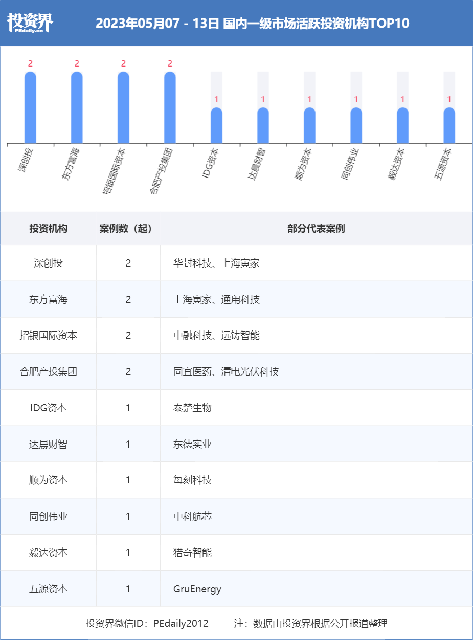 投资界不完全统计,5月7日至5月13日,期内国内一级市场发生融资事件54起,总规模超44.30亿元蓝色时间app苹果版。