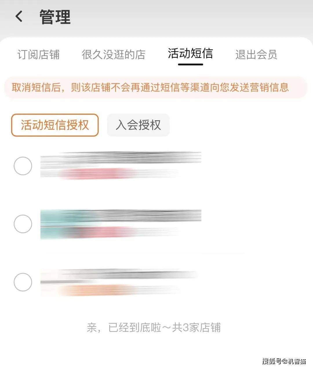 而在淘宝,则需要进入“设置→消息通知”,找到“店铺短信管理”并打开,在这里有一个“活动短信”标签,将这里所有的店铺取消即可华为手机无法过滤垃圾短信 。同样的,还可以在这里顺手把入会授权、以及关注店铺都取消掉,很多店铺都是下单自动关注,或者领取优惠券之后就会进行关注,有时间可以记得经常来这里看看,把它们都清理一下。