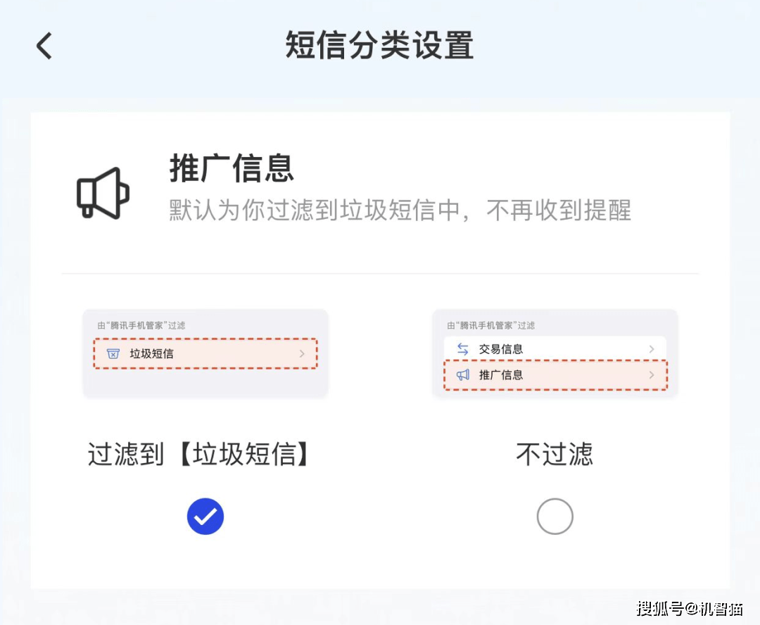 比如腾讯手机管家等,在骚扰拦截分类中,就提供了“垃圾短信过滤”功能(如果是iOS系统,需要在系统设置中打开“未知与过滤信息”功能的权限)华为手机无法过滤垃圾短信 。以后识别到推广信息,就会统一存放在一个文件夹,不会骚扰你了。