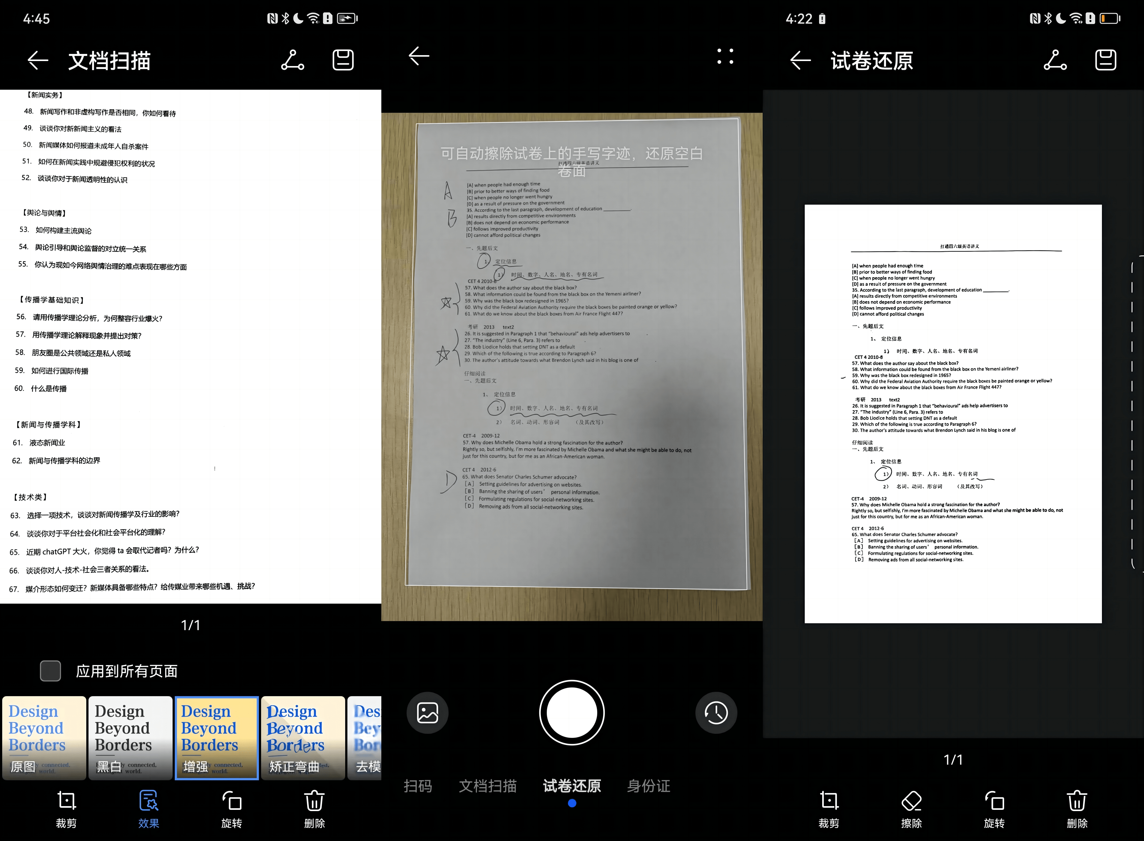 复习也时常需要收集资料一键root手机。进入华为智慧搜索界面打开右上角的“扫一扫”,无论是同学的笔记、老师的资料,还是图书馆的书籍,都能通过滑动选择【文档扫描】,一次性连续拍摄和扫描,并整理成电子文档。纸质资料或电子版资料拍摄后,用户可以使用智慧搜索的增强、矫正弯曲、去模糊、去屏纹等智能后期处理功能,最终以图片或PDF格式保存,方便打印或随时在电子设备上阅读和学习。