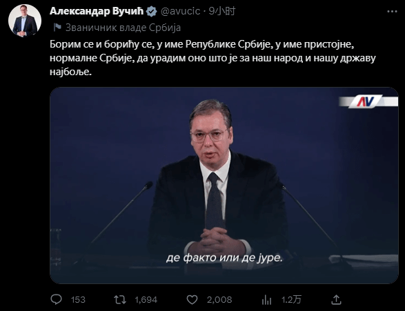 据武契奇个人网站和塞媒“novosti.rs”消息,当天,武契奇对全国民众发表公开讲话苹果12迷你版长啥样呀。