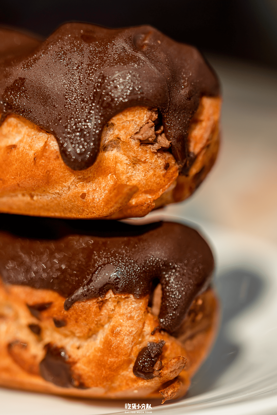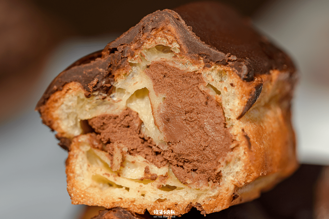 盒马新品,巧克力软哈斗蛋糕,黑巧克力淋面搭配泡芙体,造型饱满,入口醇厚丝滑烘焙甜品软件下载苹果版。夹心是巧克力奶油酱。泡芙体较为湿软,顶部的巧克力脆壳微苦,刚好中和了内馅的甜腻。