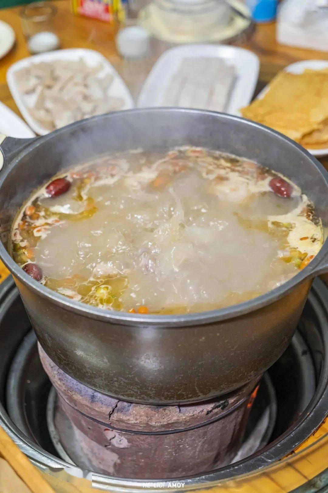 尤其是全程用炭火煲的羊肉汤底汤不火苹果版,以肥瘦相间的羊肉加上 滋补草药、枸杞、红枣等熬煮得到,滋补的同时毫无膻味,香到 小鱼君精神出走!