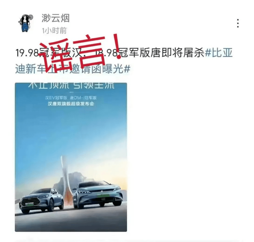 针对上述传闻,比亚迪网络举报中心官微于3月15日发文称,“网传汉EV冠军版、唐DM-i冠军版上市售价低于20万元为不实消息来这分期苹果版。”