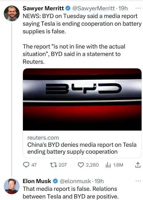 对于上述传言,比亚迪与马斯克均进行了辟谣来这分期苹果版。特斯拉CEO马斯克于3月14日通过社交平台表示:“媒体报道内容不实,特斯拉和比亚迪之间的关系是积极的。”比亚迪相关工作人员在3月15日接受记者采访时称:“(上述消息)不实,与实际情况不符。”