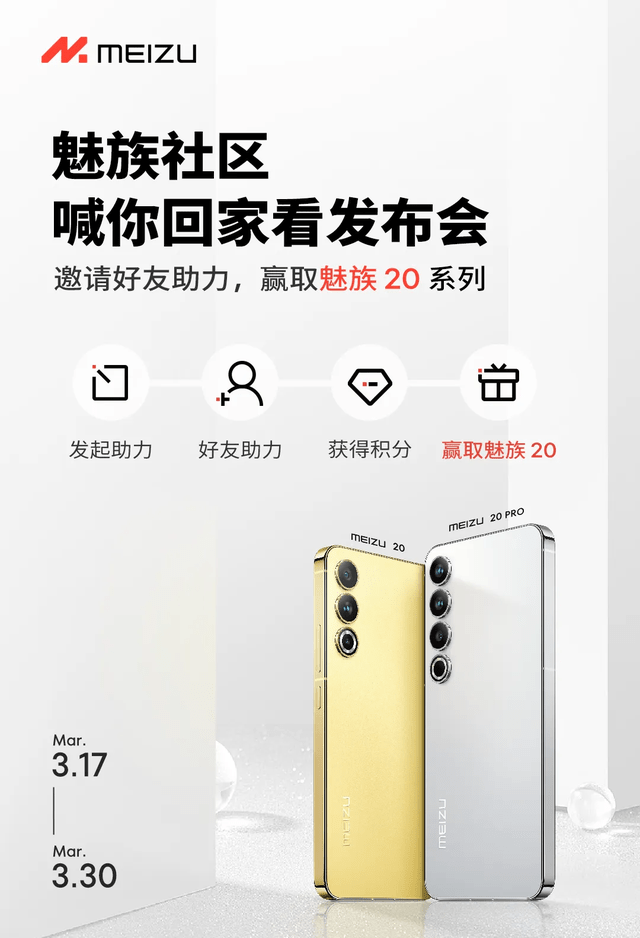 值得一提的是韩版苹果静音软件,魅族社区还开启了“喊你回家看发布会”的活动,邀请好友助力,就能获得积分,还有机会赢取魅族 20 系列,感兴趣的朋友不容错过!