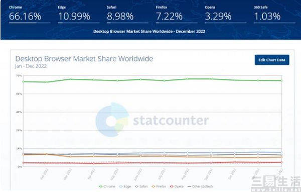 根据数据统计网站statcounter发布的2022年的浏览器市场份额显示,Chrome拥有66.16%的市场份额,而Edge则只有10.99%,后者在2022年更是仅仅只增长了1.45%谷歌翻译器下载手机版苹果。