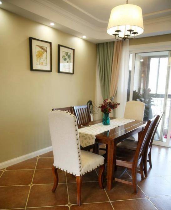 餐厅苹果版累群挂 ,实木餐桌餐椅,质感非常好,墙上挂了两幅画作为简单的装饰,餐厅是吃饭的地方,不适合装的花里胡哨,看到有的人家里餐厅挂了满墙的照片,我只想说,眼不花吗?
