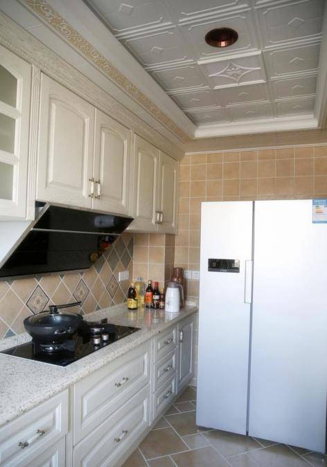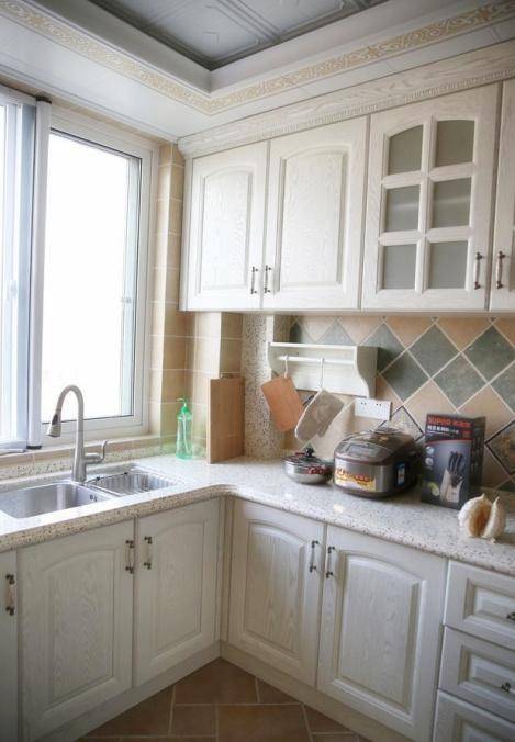 厨房苹果版累群挂 ,上面打了吊柜,有足够的收纳空间