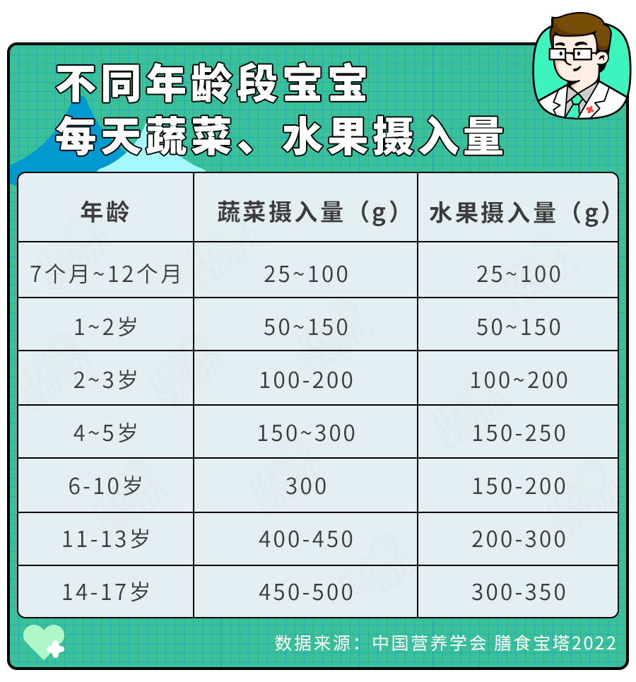 科大大严谨的翻了翻《中国居民膳食宝塔 2022》,发现给孩子吃蔬菜水果都是有指导量的爱看娃家长版苹果。