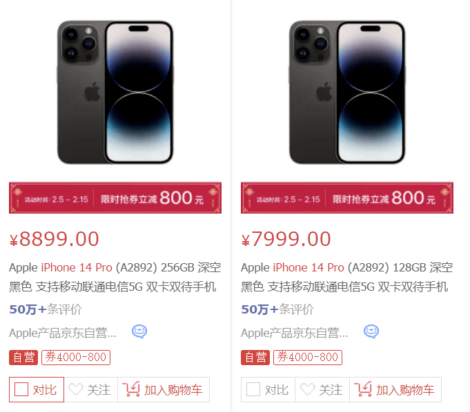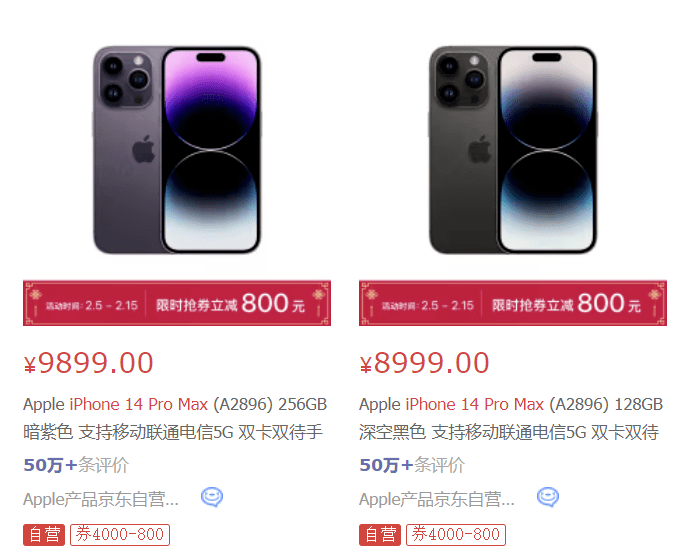 在线上平台,苹果产品京东自营旗舰店也推出特惠,iPhone 14 Pro系列限时抢券立减800元,活动时间为2月5日至15日苹果6韩版信号 。