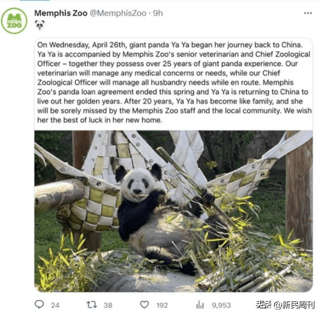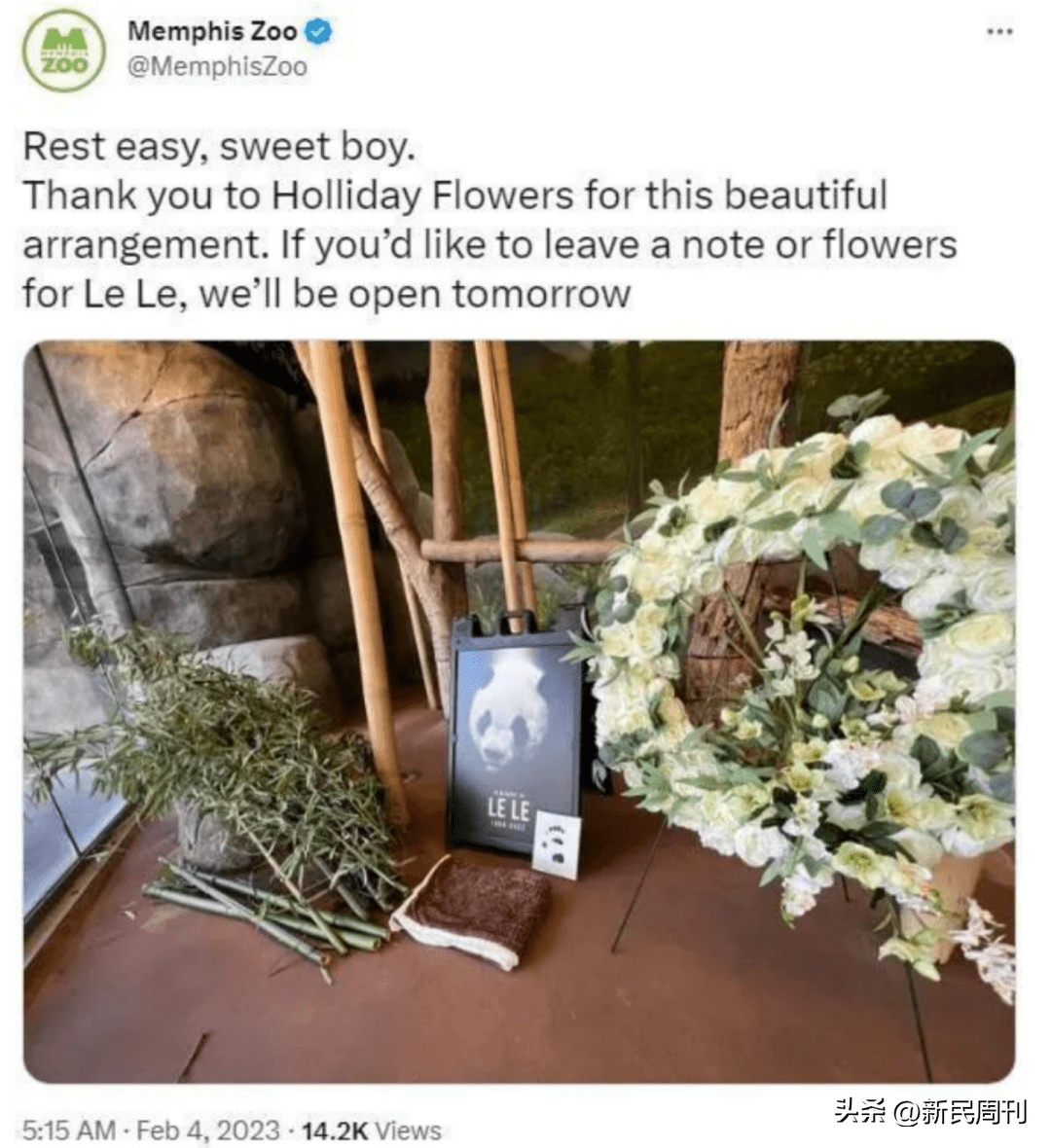 美国孟菲斯动物园在社交平台上悼念大熊猫“乐乐”