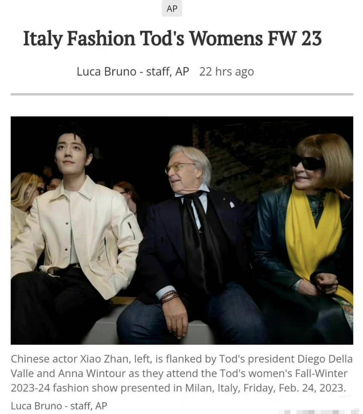 此前,美联社第一时间发布TODS大秀图片,肖战和TODS集团创始人兼董事会领导Diego Della Valle、以及VOGUE美版主编安娜·温图尔(Anna Wintour)并排看秀厘米秀抓人苹果版。安娜人称“时尚女魔头”,大家熟知的好莱坞影片《穿Prada的女王》就是以她为原型的。显然,TODS集团领导将肖战作为安娜一般重量级的主宾,落座于自己身边。
